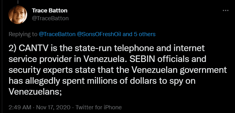 這基本上是可能的,因為該國最大的 ISP CANTV 現在歸政府所有。換句話說,政府可以不受限制地訪問您的在線活動, 能收集您的廣泛數據,以及查看您在網上所做的一切。