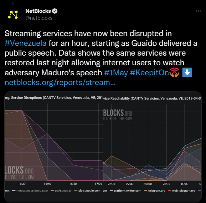 委內瑞拉政府正在因限制互聯網速度而臭名昭著在選舉和抗議期間。這樣,就可以削弱信息流動對外界和挫敗公民的嘗試尋求讓事情順利進行。
