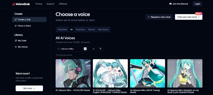 VoiceDub 是一款功能強大的聲音轉換工具,非常適合創建哈利波特語音生成器體驗。它可以讓用戶立即用超過 10,000 種 AI 聲音替換音頻文件中的人聲。借助文本轉語音 (TTS) 功能,您可以輸入文本並使其看起來像是在錄音室錄製的。借助其語音克隆功能,您可以訓練人工智能識別您的語音。 Stem Isolation 工具可以免費將人聲與樂器分開。最重要的是,它速度很快,並且每天都會更新以獲得更好的性能。
