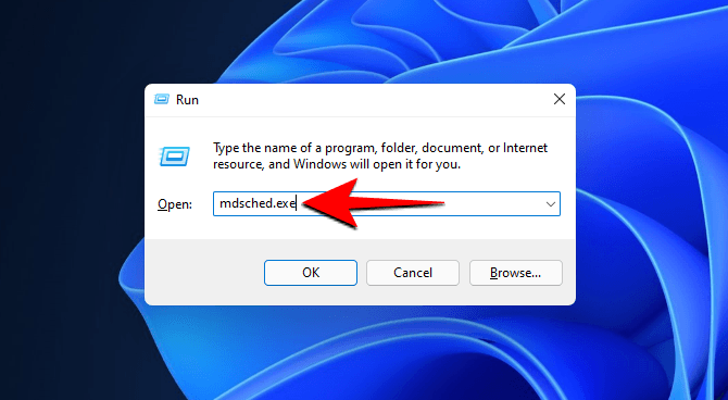 步驟1:按Win+R打開“運行”對話框,輸入mdsched.exe,然後按Enter鍵。