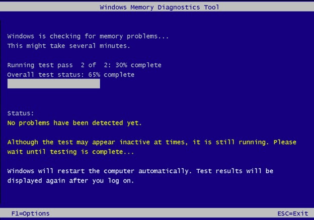 步驟 3:您的系統將重新啟動,然後將啟動診斷測試。它會告訴你你的記憶是否有錯誤。
