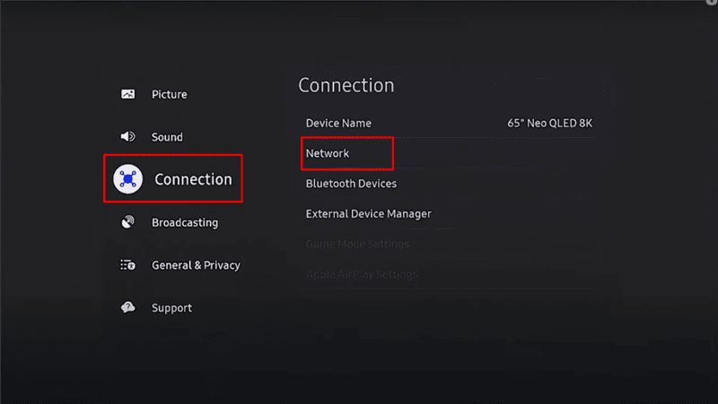 第 1 步:進入電視的“設置”菜單。選擇常規 > 外部連接管理器。