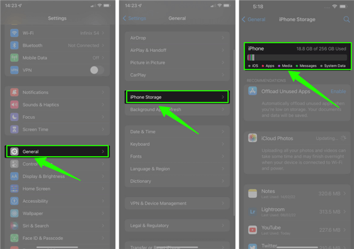 - 首先,去前往設置 > 常規 > [設備] 存儲。