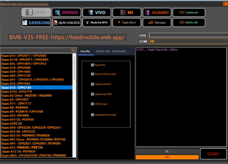 BMB V35 Tool 是免費下載的軟件,旨在協助聯發科 (MTK) 和高通芯片組驅動的 Android 設備解鎖和修復。該應用程序配備了針對OPPO、Vivo、三星、華為和小米等多個品牌的FRP(恢復出廠設置保護)移除、屏幕鎖定繞過、恢復出廠設置和Bootloader解鎖。