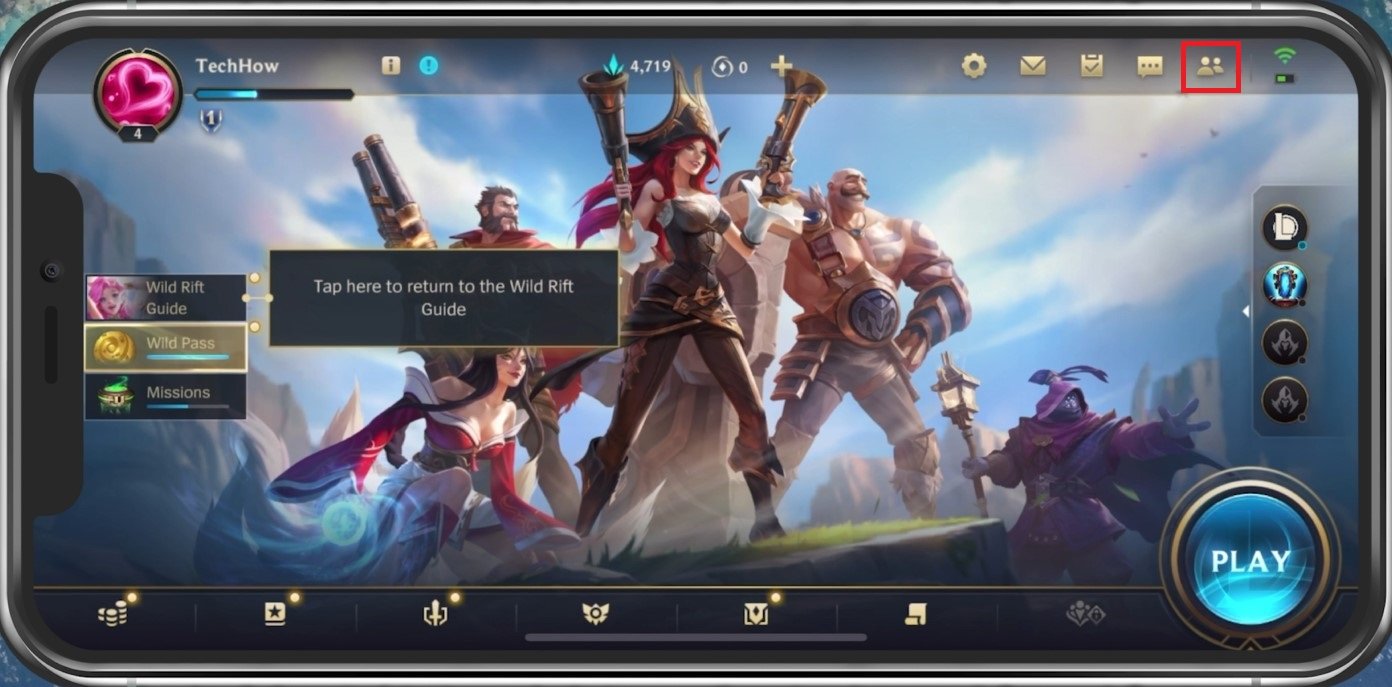 在 Wild Rift 主菜單中,點擊屏幕右上角的社交圖標。