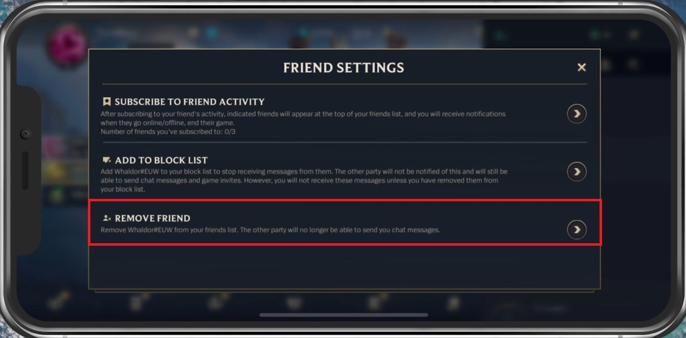 Wild Rift 好友選項卡 > 好友設置 > 刪除好友
