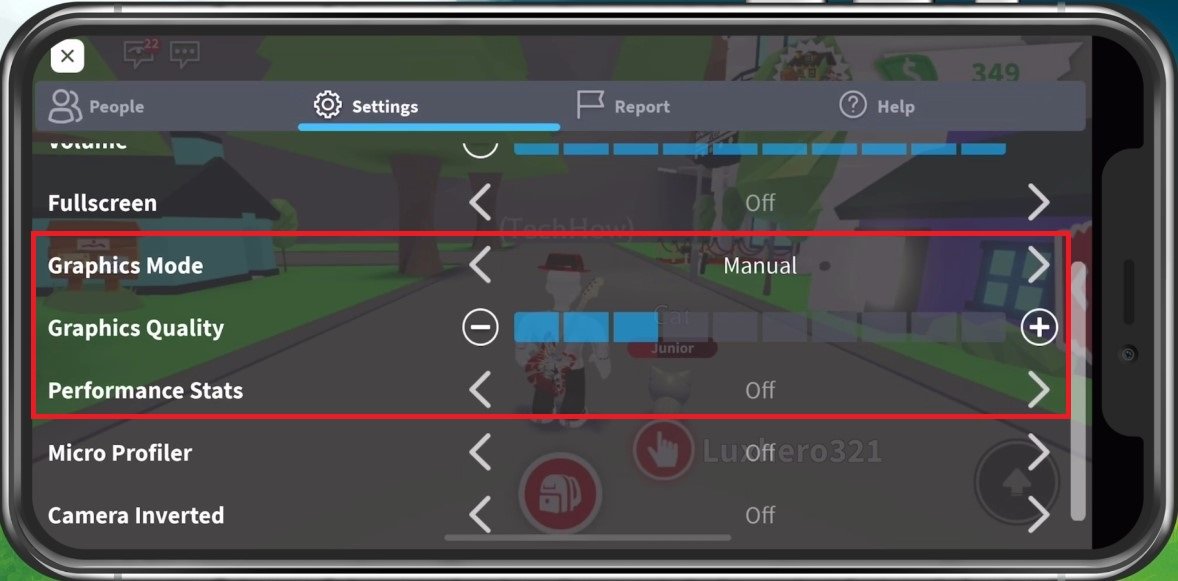 Roblox 移動設置 > 圖形