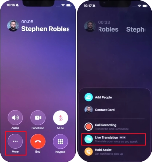 下次當您想通過 FaceTime 進行一對一視頻通話時,您無需再擔心 Apple 實時翻譯功能的語言障礙。通過翻譯的實時字幕,對話將顯示在 iPhone 屏幕上。您可以在屏幕上閱讀翻譯,同時聽到聯繫人的聲音。