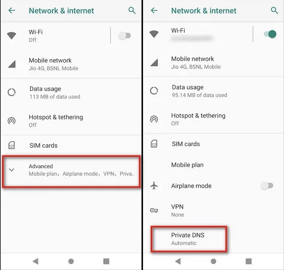步驟 2. 設置 > 網絡和 Internet > 高級 > 私有 DNS