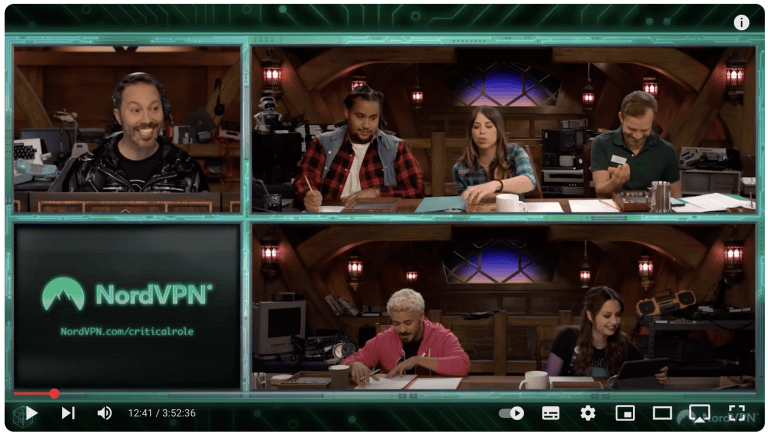 作為一個長期運營的DnD直播團體,Critical Role 的 NordVPN 促銷出現在讚助片段或流描述中。