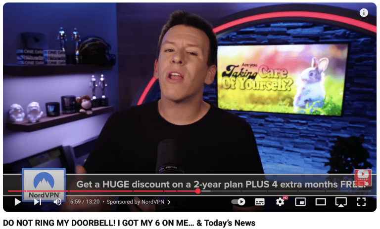 Philip DeFranco 以新聞為中心且極其誠實,經常在劇集中途放棄 NordVPN 贊助。他對於在旅行和遠程工作時使用它來保護他的設備的安全持坦率態度。