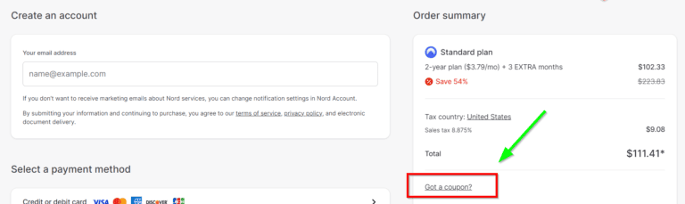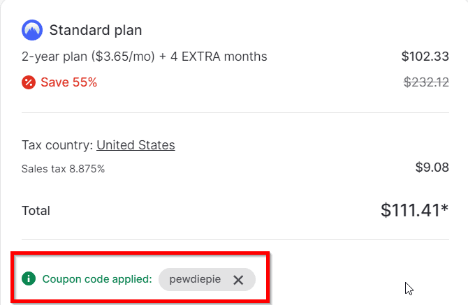 他的 NordVPN 創建者代碼通常會在結賬時自動申請,為 1 年或 2 年計劃提供大幅折扣。