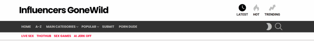 Influencers Gone Wild 結合了業餘視頻、影響者洩露的剪輯以及用戶提交的內容。它具有 TikTok 風格的視頻源和趨勢標籤,可幫助您快速找到熱門內容。雖然大多數內容都是免費的,但該網站會引導訪問者獲得優質優惠,並擁有公平的廣告份額。對於休閒瀏覽來說很有趣,但對於深入了解特定創作者來說卻不是最好的選擇。