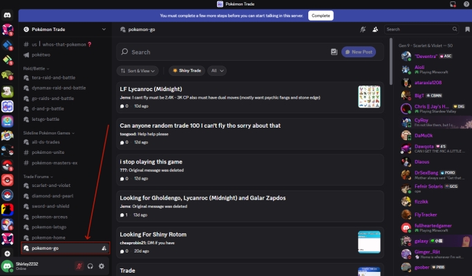 在 Pokemon GO Trade 服務器中,您可以享受頻繁的贈品、及時的活動更新以及有關新 Pokemon 或交易限制變更的即時通知。會員可以自由發布交易請求,但最好先檢查服務器的交易規則。接下來是如何交易。