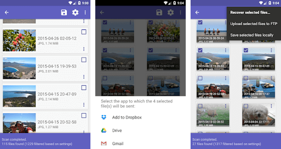 強大的數據恢復功能可幫助您找到丟失的照片,並讓您在短短幾分鐘內恢復它們。此外,您還可以將所有恢復的文件或照片直接上傳到您的 Google Drive 或 Dropbox 帳戶,甚至可以通過電子郵件發送它們。