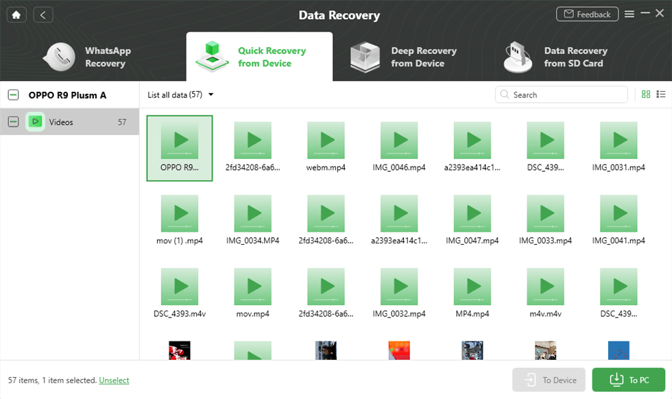 除了照片恢復之外,許多用戶還在尋找適用於 Android 的最佳視頻恢復應用程序,無需 root。除了使用上面的軟件來恢復視頻之外,這裡我們還介紹一款專門用於恢復視頻的軟件——Video Recovery。無論您想直接從 SD 卡還是設備恢復珍貴的視頻,這個工具都可以輕鬆為您做到。最重要的是,這也是一款免費的安卓數據恢復軟件,無需root。