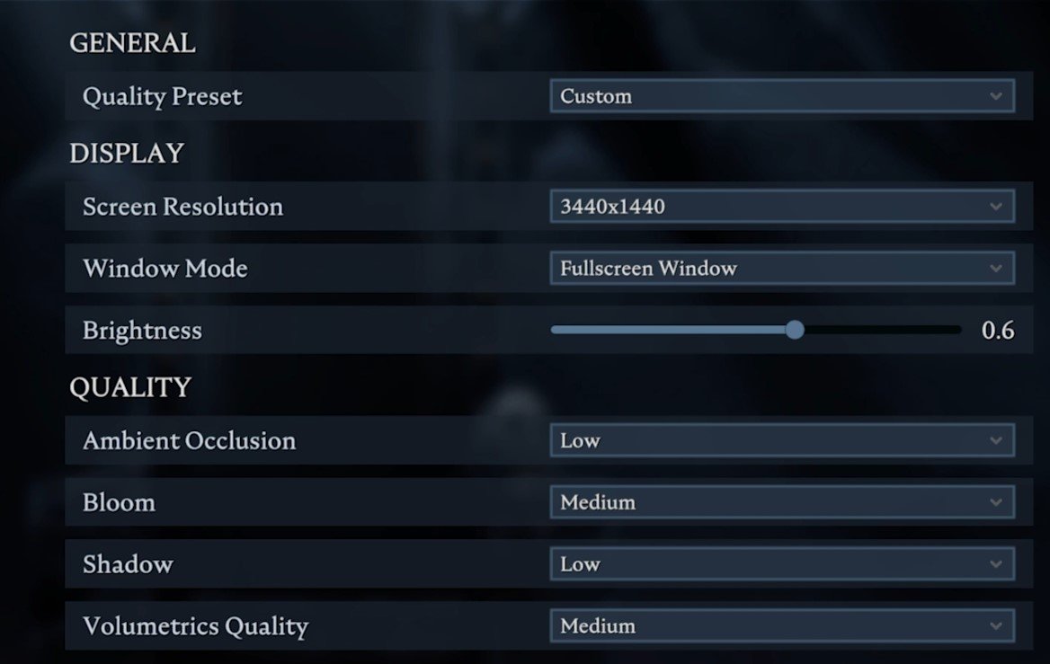 設定屏幕分辨率到您的本機顯示器分辨率。為了獲得最佳性能,請確保玩全屏模式。這亮度下面的選項不會影響您的表現,因此請根據您的個人喜好進行設置。設定環境光遮擋選項在你的品質設置為低的,盛開到中等的,陰影到低的,和體積質量到中等的。我更喜歡將陰影設置為最小值,但您可能希望將設置增加到中等的。