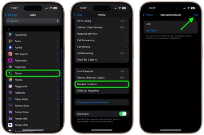 請注意,您還可以通過以下方式訪問和管理“設置”應用程序中的阻止聯繫人列表消息 -> 已阻止和FaceTime -> 被阻止。