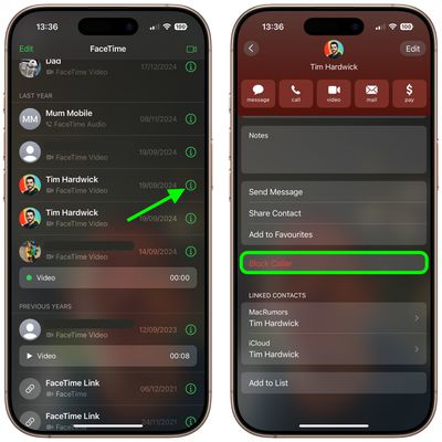 如果您收到來自您想要阻止的號碼的 FaceTime 通話,請按照以下步驟操作。