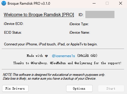 現在您已在設備上安裝了 Broque Ramdisk Pro,是時候繼續使用該工具繞過 iCloud 激活了。本部分將指導您完成解鎖 iPhone 並繞過 iCloud 激活鎖的分步過程。您可以按照以下簡單說明在 Windows PC 上註冊並使用 Broque Ramdisk Pro。