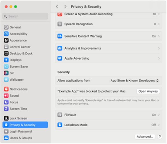 步驟1。去蘋果菜單進而“系統設置>隱私與安全”。
