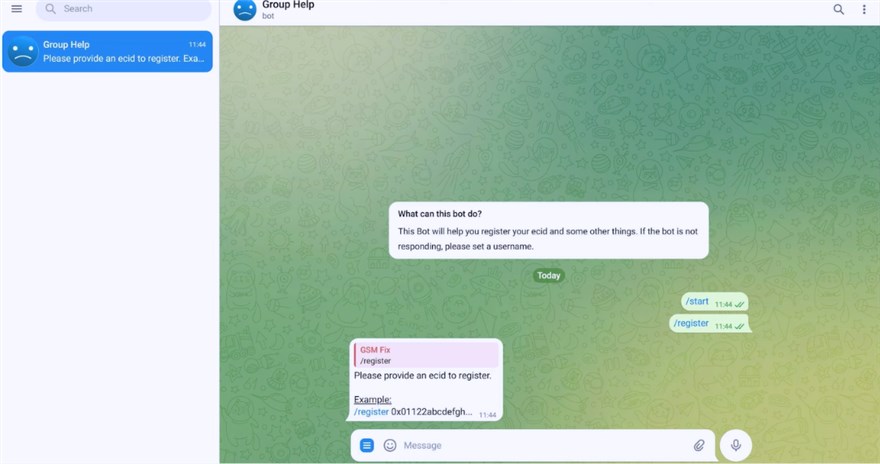 步驟2。使用Telegram的@broque_bot註冊iOS設備的ECID號碼,以解鎖所有功能。 ECID是一個唯一的設備標識符。當您的設備連接或以DFU模式連接時,您可以在iTunes上找到它。