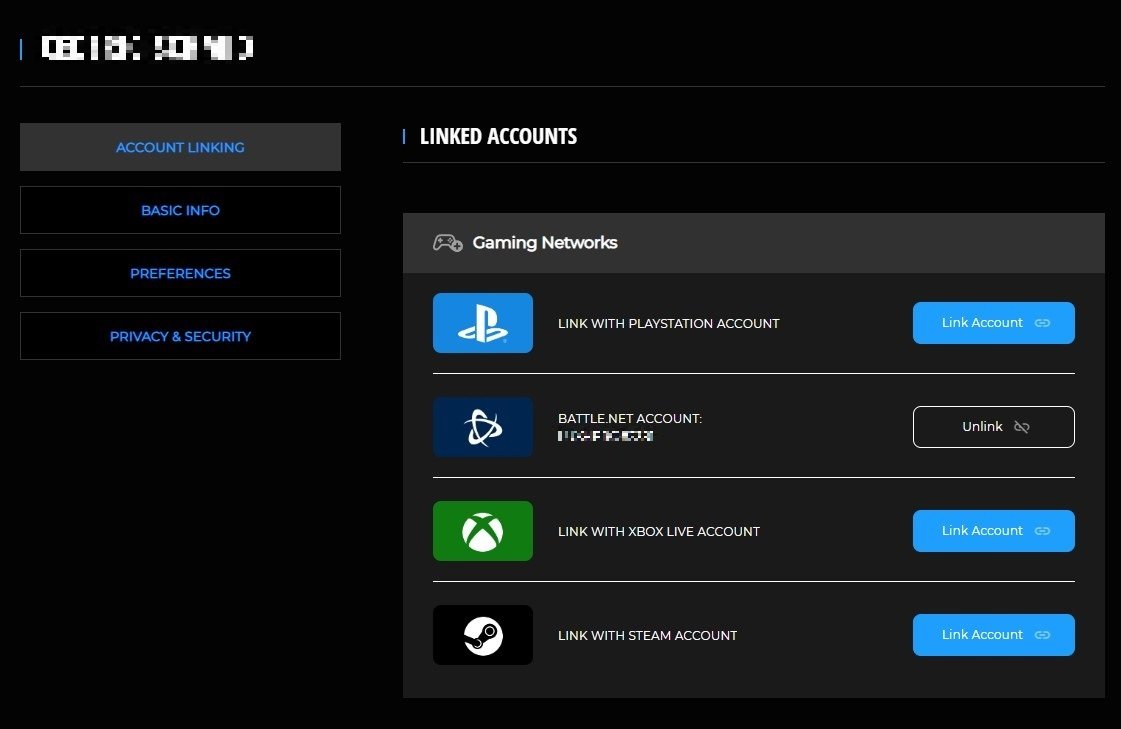 當您單擊帳戶鏈接時,您可以根據選擇的平台(PlayStation,Xbox,Steam或battle.net鏈接帳戶鏈接您的帳戶。
