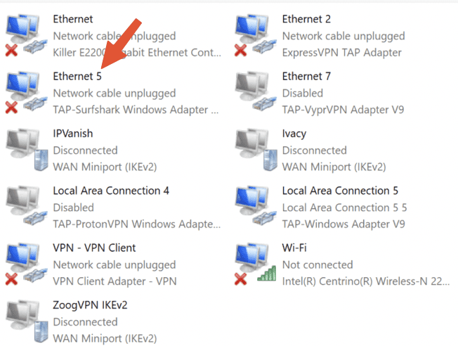 - 右鍵單擊“TAP-Surfshark Windows 適配器”並選擇“特性”。