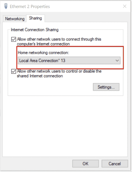 - 在下面 ”家庭網絡連接,”選擇您上面記下的本地連接,然後單擊“好的”。
