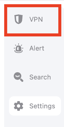 - 打開 Surfshark VPN 應用程序並單擊“設定”在左側菜單上。