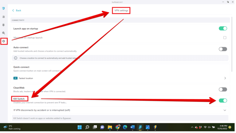 - 啟用終止開關以防止 VPN 斷開連接時 IP 洩漏。前往設置 > VPN 設置 > Kill Switch 特徵。
