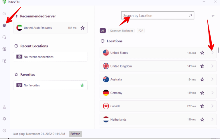 - 連接到不同的服務器:有時,英雄聯盟可能會阻止您連接的 PureVPN 服務器。因此,洗牌服務器並連接到同一或另一個首選區域中的新服務器。