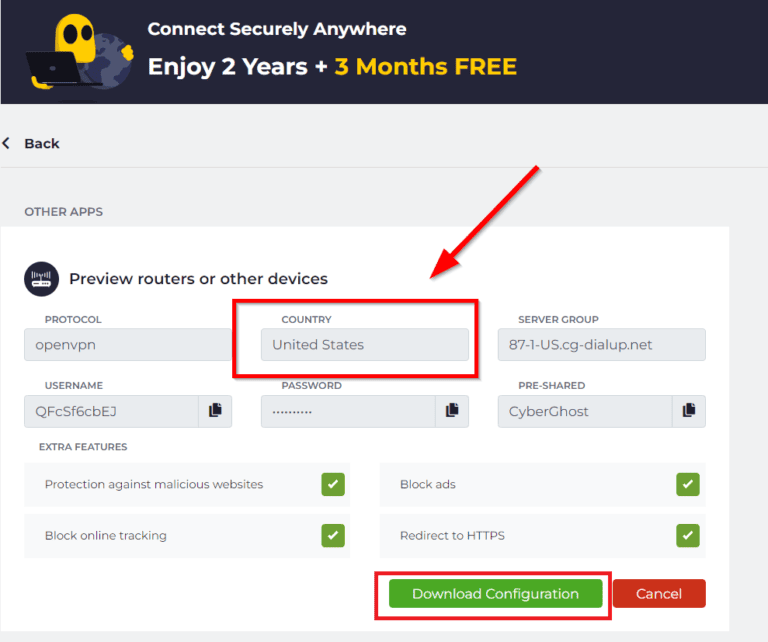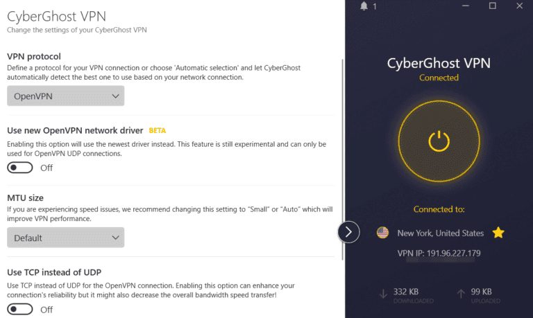 - 連接到 CyberGhost 的OpenVPN協議(可靠路由 VPN 連接的首選)。