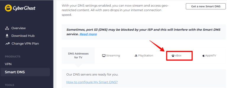 CyberGhost 提供智能 DNS 來解鎖 Xbox 上的遊戲和流媒體內容。