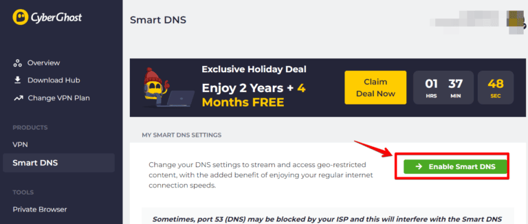 由於 CyberGhost 智能 DNS 不會加密您的數據,因此您的在線安全和隱私可能面臨風險。