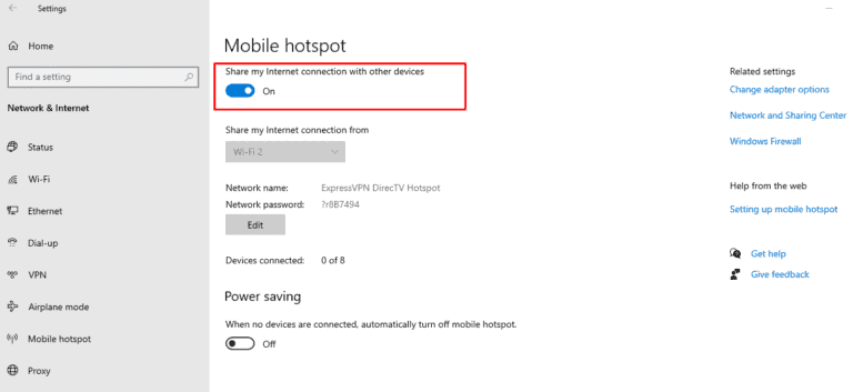 - 啟用“與其他設備共享我的互聯網連接“ 選項。