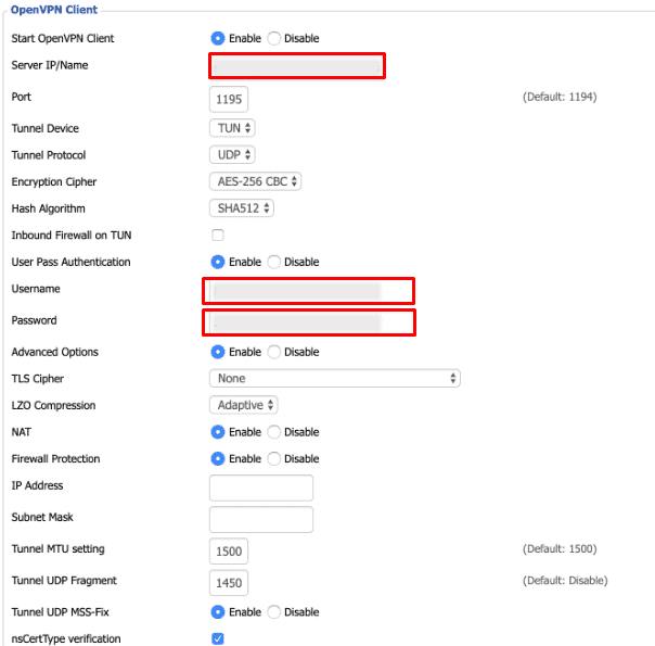 - 港口:輸入 .ovpn 文件中服務器地址旁邊的四位數字。