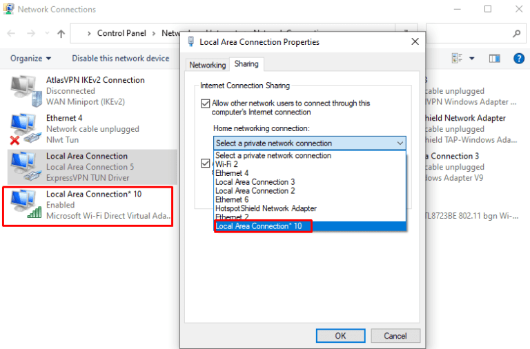 您的移動熱點的本地連接用星號表示。就我而言,它是本地連接* 10。