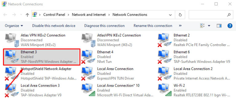 - 右鍵單擊TAP-NordVPN Windows 適配器並選擇特性。