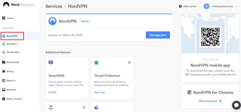 - 登錄您的北方VPN 帳戶然後單擊北方VPN在“服務“ 部分。