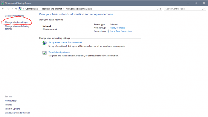 - 選擇 ”更改適配器設置”並找到您的活動連接。在我的系統上,這是點擊 NordVPN Windows 適配器。
