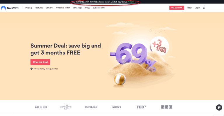 - 您可以通過前往 https://nordvpn.com/ 並檢查標頭橫幅“受保護”來檢查您的連接。