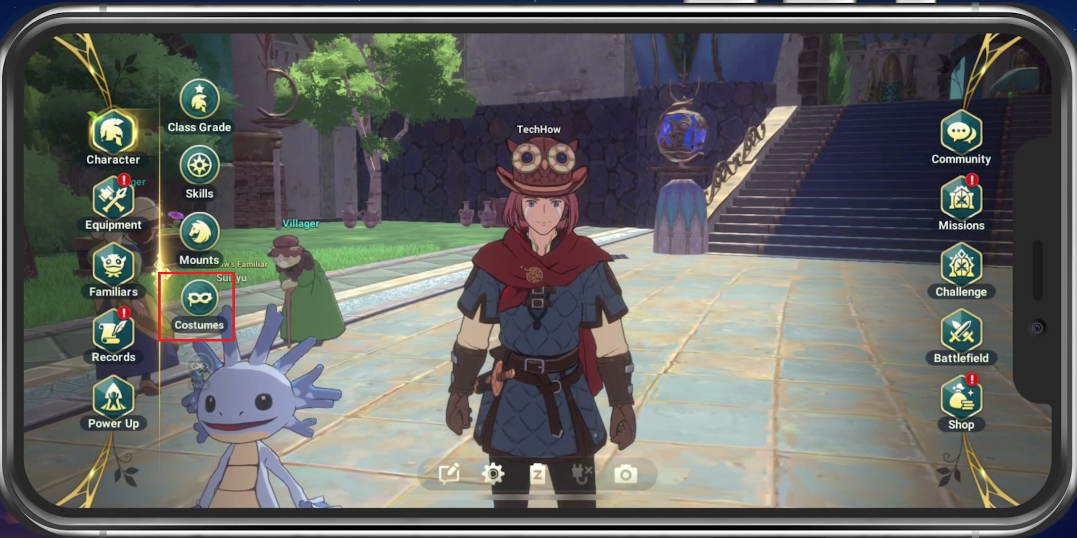 遊戲中時,請點擊屏幕右上角的漢堡菜單。從這裡選擇特點圖標,然後點擊服裝。
