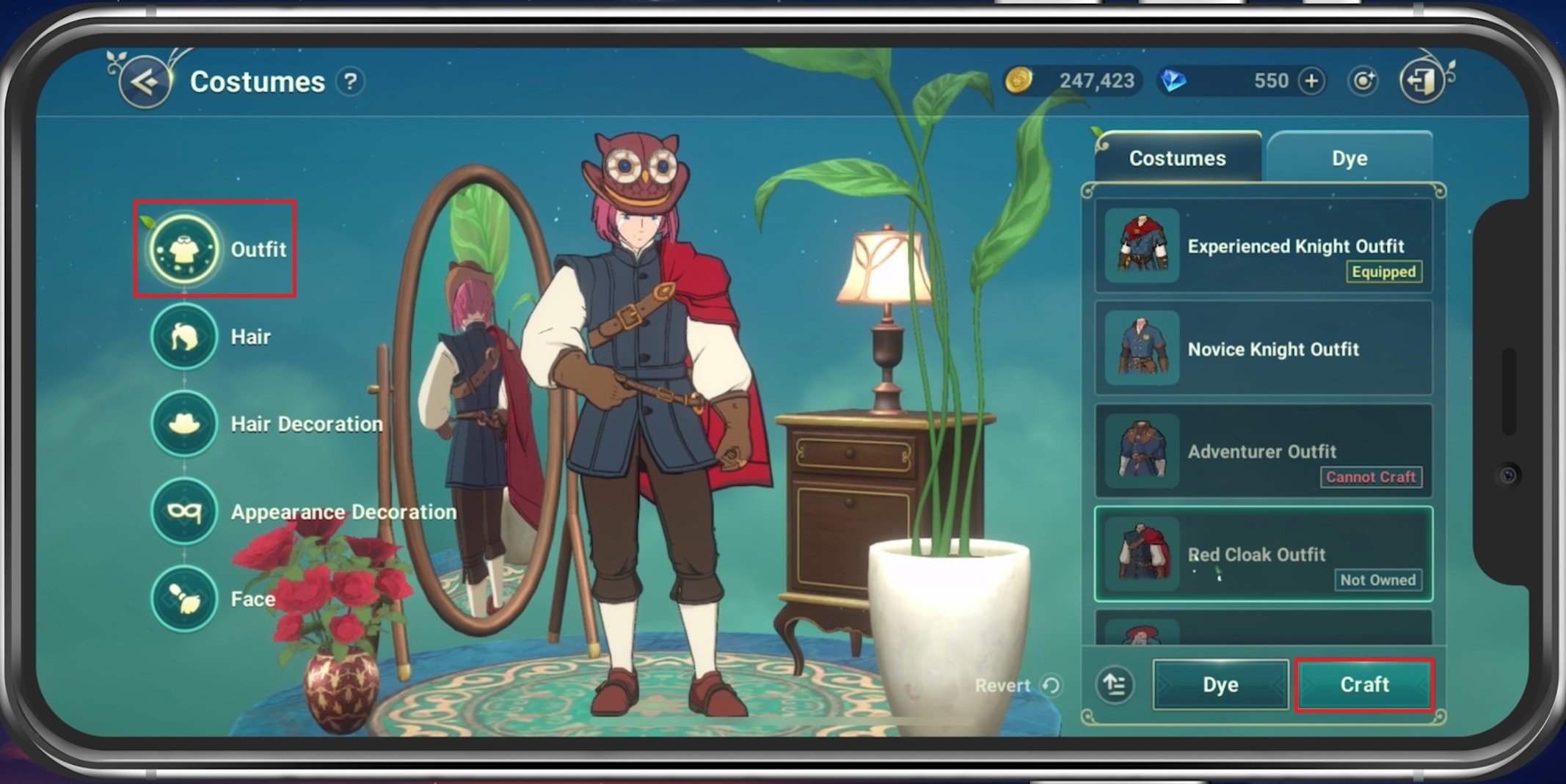 您可以預覽角色,並從未鎖定或精心製作的服裝清單中挑選。如果您想解鎖特定的服裝,請點擊工藝選擇它之後。
