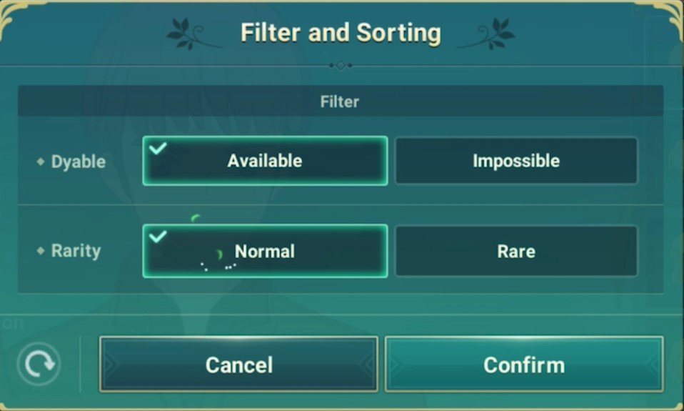 選擇項目列表底部的箭頭圖標時,您可以選擇如何過濾和分類服裝,裝飾項目等。