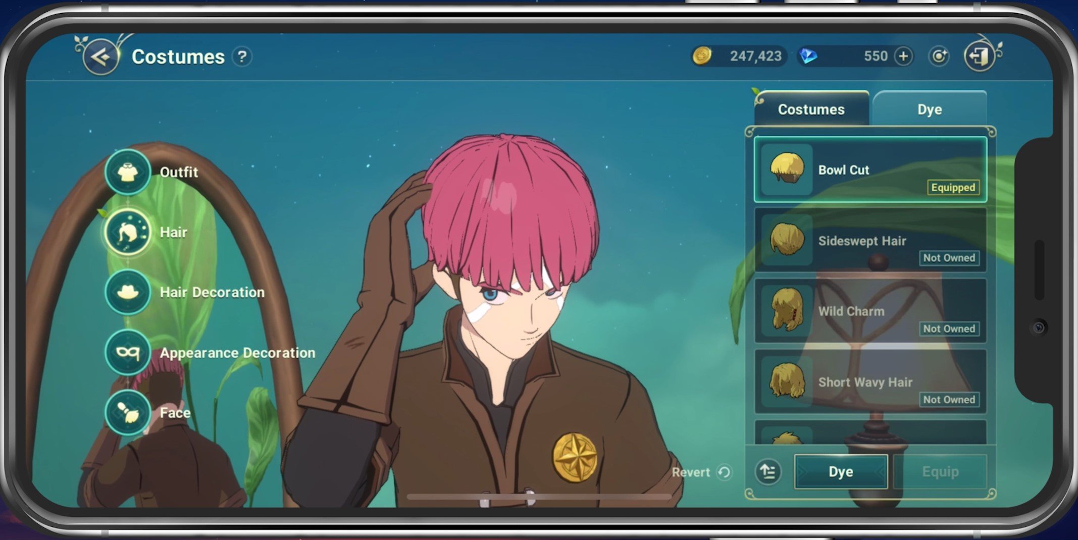 在頭髮部分,您可以以相同的方式進行配備,製作和染色新樣式。