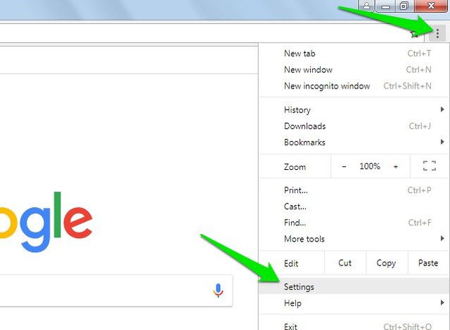 1. 單擊 Chrome 的主菜單並選擇"設定"從它。