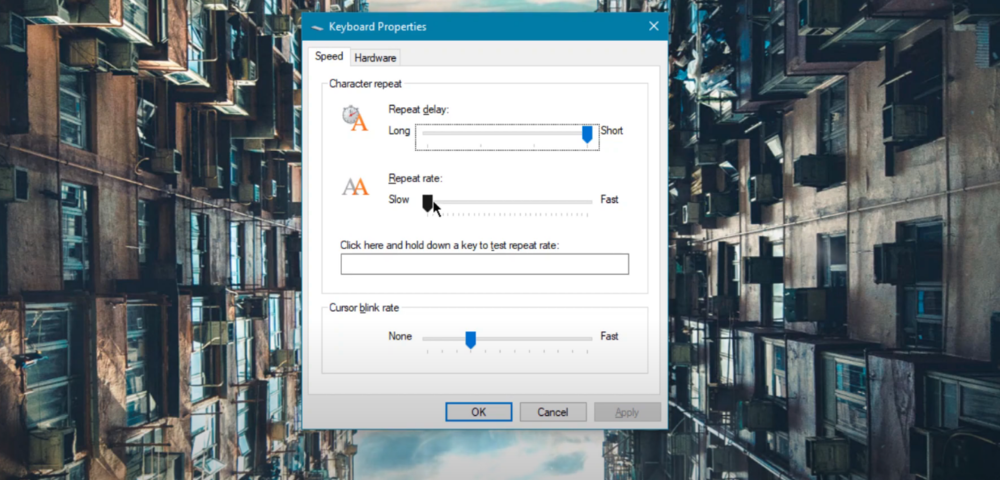 為了進一步減少CSGO中的輸入延遲,您還可以在鍵盤控制面板中調整設置。在“重複延遲”選項中,將其設置為“短”,以確保按下按鍵時有更快的響應時間。此外,您可以將重複率設置為“慢”,這會減慢按住按鍵時的重複速度。這些調整可以確保更快、更準確地處理鍵盤輸入,從而幫助解決 CSGO 中的輸入延遲問題。