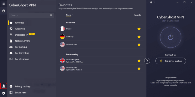 CyberGhost 通過不存儲您的連接日誌來確保匿名。