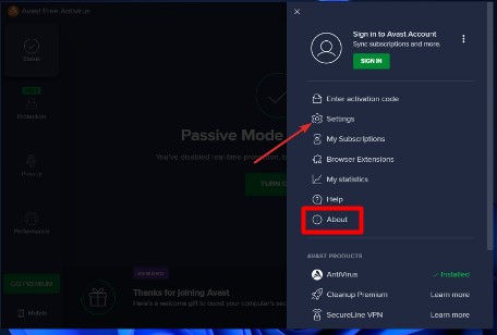 如果您有 Avast 防病毒程序版本21.7或更高版本,您擁有 Avast 防火牆,因為它預裝了這些版本的防病毒軟件。要檢查您擁有的防病毒軟件版本,請執行以下操作: